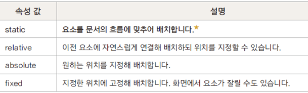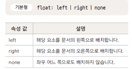 웹 문서 안에 요소들을 배치하기 위한 속성