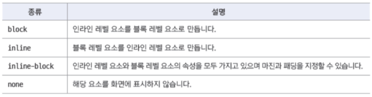블록 레벨 요소, 인라인 레벨 요소를 바꿀 때 사용하는 속성 값