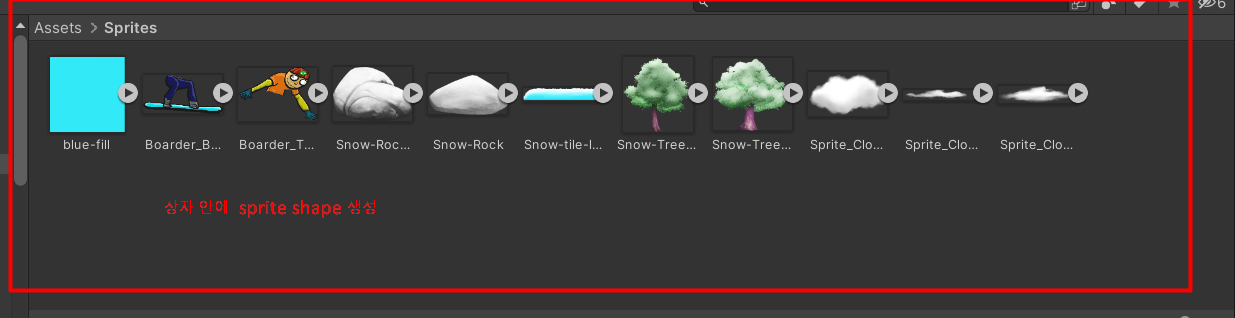 Sprite shape 모양을 생성 한다. 이번 세션에서는 Snow board 를 주제로 하기 때문에 지형을 위해 생성했다.